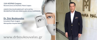 Ο Δρ. Μπουκουβάλας παρουσίασε σε Έλληνες και ξένους Πλαστικούς Χειρουργούς μία νέα δίκη του σύνθετη τεχνική βλεφαροπλαστικής που αφορά τα άνω και κάτω βλέφαρα και κατά την οποία διενεργείται αποκατάσταση του λίπους του οφθαλμικού κόγχου, ενίσχυση των διαφραγμάτων, ιδιαίτερα των κάτω βλεφάρων και ανάρτηση του περικογχικού μυός.